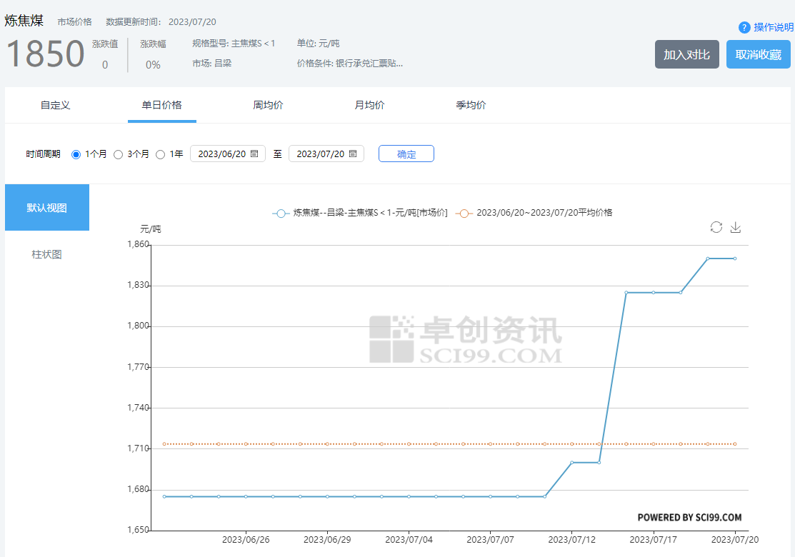 三、呂梁地區(qū)近一月主焦煤價(jià)格變化曲線